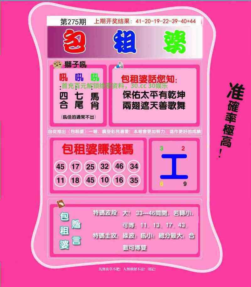 275期:阴阳生肖【阴肖阴肖】开:鸡45